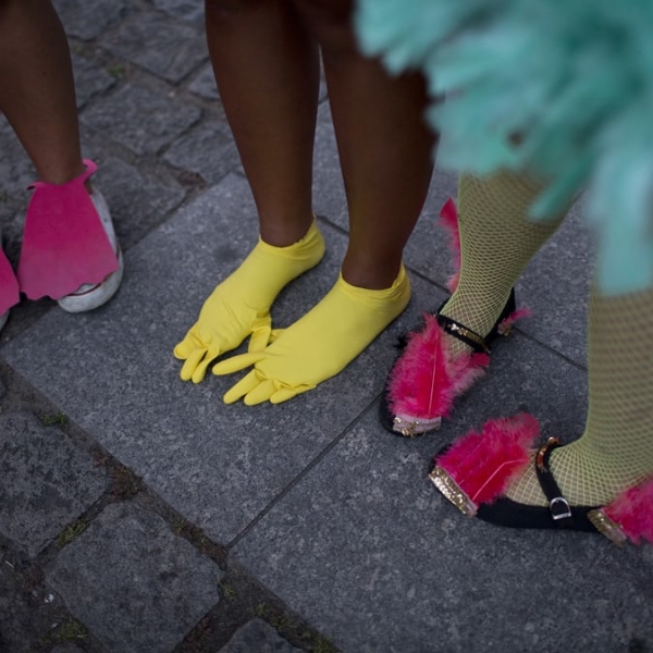 სილვია ისკიერდო - რიო დე ჟანეირო, ბრაზილია: ფრინველების მსგავს საკარნავალე კოსტიუმებში გამოწყობილი ქალების ფეხები.
