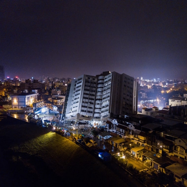 ბილი კვოკი - ჰუალიენი, ტაივანი: 6.4 მაგნიტუდის მქონე მიწისძვრისას დაზიანებული შენობა.