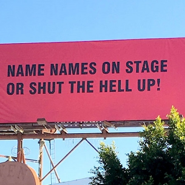 უილშირის ბულვარსა და ლა ბრის ავენიუს მახლობლად აღმართულ სამ სარეკლამო ბილბორდზე შემდეგი ტექსტებია დართული: