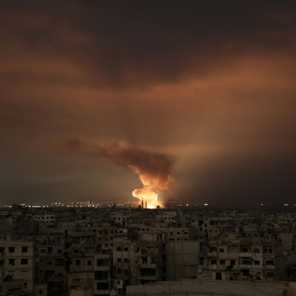 ამარ სულეიმანი - აღმოსავლეთ ღუტა, სირია: ალი და კვამლი მთავრობის მიერ განხორციელებული საჰაერო დარტყმისას.