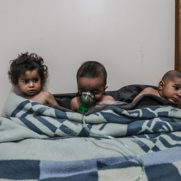 მოჰამედ ბადრა - ალ-შიფუნიე, სირია: დაშავებული ბავშვები აღმოსავლეთ ღუტას რეგიონში მდებარე საავადმყოფოში.