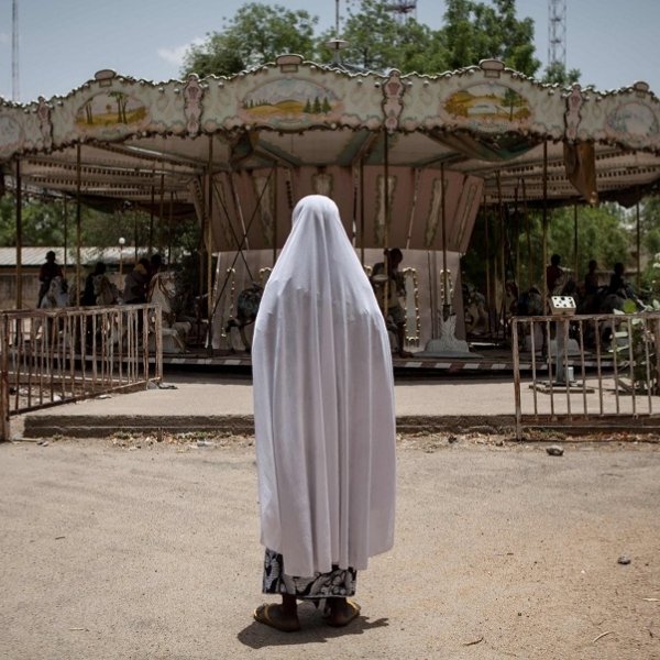 ფლორიან პლოშერი - მაიდუგური, ნიგერია: ბოკო ჰარამის თავდასხმების გამო მცირედ დასახლებულ ქალაქში ქალი მიტოვებულ ატრაქციონზე მოთამაშე ბავშვებს აკვირდება.