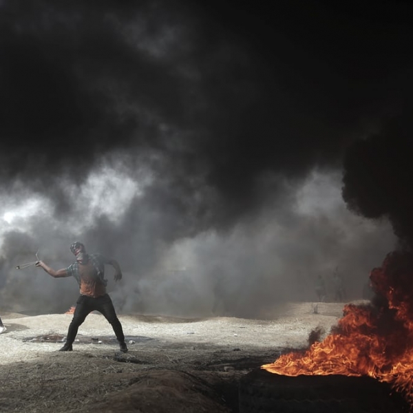 ხალილ ჰამრა - ღაზა, პალესტინა: პალესტინელი დემონსტრანტები ისრაელის სპეცრაზმის წინააღმდეგ.