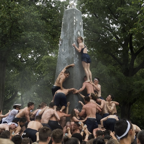 UPI - ანაპოლისი, მერილენდი: ტრადიციული სტუდენტური შეჯიბრების - ჰერნდონის მონუმენტზე აძრომის მონაწილეები.