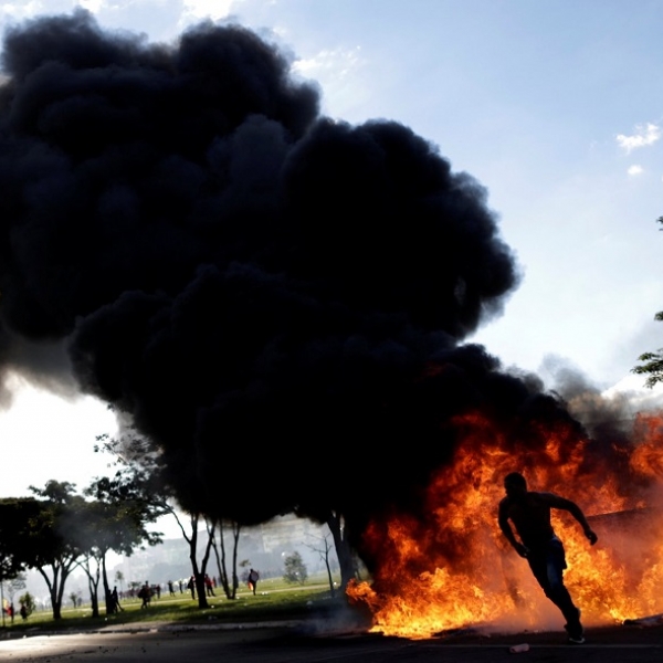 უესლეი მარსელინო - ბრაზილია, ბრაზილია: კორუფციის სკანდალის გამო პრეზიდენტ მიჩელ ტემერის საწინააღმდეგო პროტესტის მონაწილე ცეცხლმოკიდებულ ბარიკადთან.