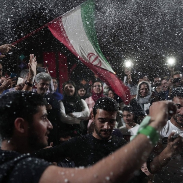 ბეჰრუზ მეჰრი - თეირანი, ირანი: ახლადარჩეული პრეზიდენტის, ჰასან რუჰანის მხარდამჭერები არჩევნებში გამარჯვებას ზეიმობენ.