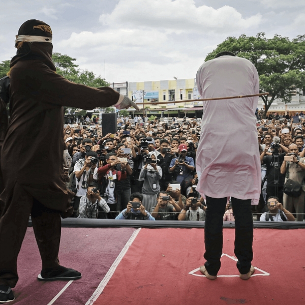 ჰერი ჯუანდა - ბანდა აცე, ინდონეზია: გეი მამაკაცის ჯოხის ცემით დასჯა შარიათის კანონების მიხედვით.