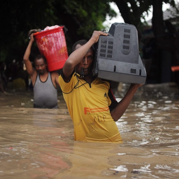 მოჰამედ აბდივაჰაბი - მოგადიშო, სომალი: მოსახლეობას წვიმების შედეგად მომხდარი წყალდიდობისას საყოფაცხოვრებო ნივთები გააქვთ.