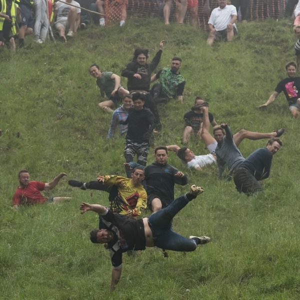 აარონ ჩოუნი - ბროკუორთი, ინგლისი: გორაკიდან სწრაფად დაშვების ყოველწლიური თამაშის მონაწილეების კუპერის ბორცვზე.