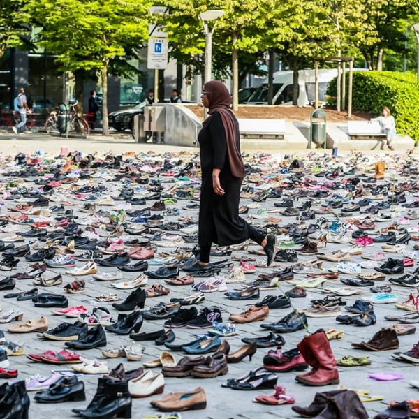 სტეფანი ლე კოკი - ბრიუსელი, ბელგია: მუსლიმი ქალი პალესტინელ მსხვერპლთათვის მიძღვნილ მემორიალზე.