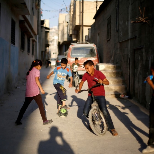 მუჰამად ჰამედი - ამანი, იორდანია: პალესტინელი ბავშვები ქუჩაში თამაშისას ალ ბაქას ლტოლვილთა ბანაკში.