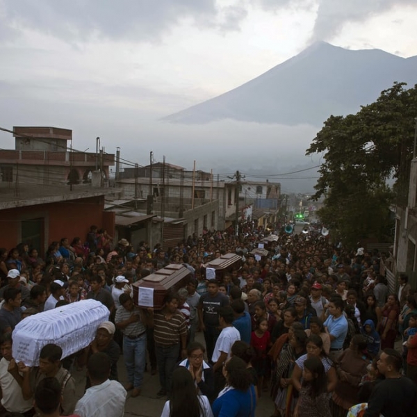 ლუის სოტო - სან ხუან ალოტენანგო, გვატემალა: ვულკან „ფუეგოს“ ამოფრქვევის 7 მსხვერპლის ერთდროული დაკრძალვა.