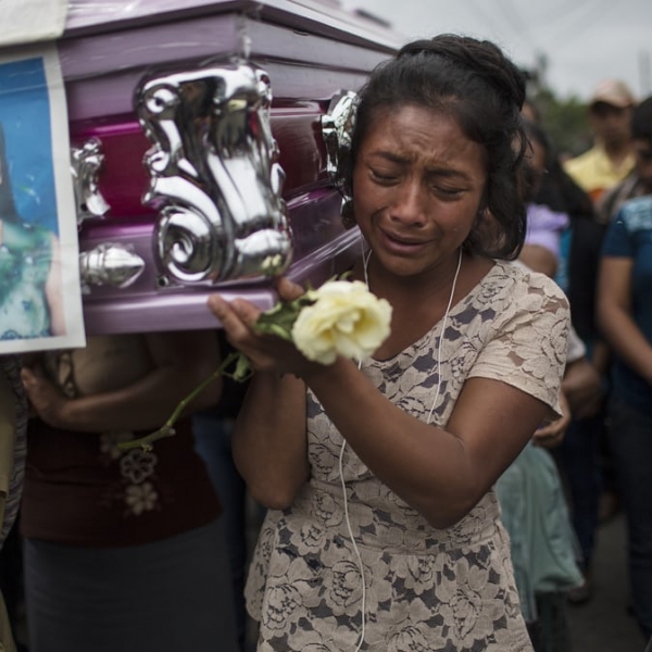 როდრიგო აბდი - სან ხუან ალოტენანგო, გვატემალა: იოსელინ რანჩო თავისი მეგობრის, ვულკანის ამოფრქვევის მსხვერპლ ეტელვინა ჩარალის დაკრძალვაზე.