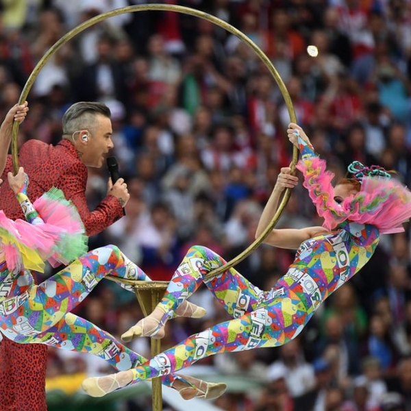 კირილ კუდრიავცევი - მოსკოვი, რუსეთი: ბრიტანელი პოპ-ვარსკვლავი რობი უილიამსი მსოფლიოს საფეხბურთო ჩემპიონატის გახსნის ცერემონიაზე.