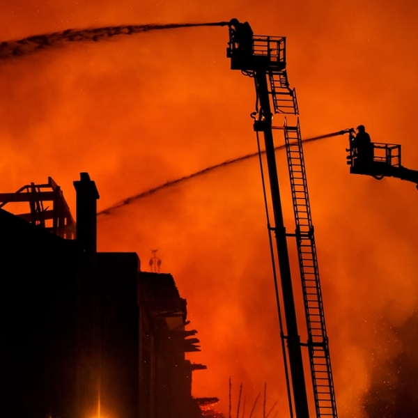 ჯეფ მიჩელი - გლაზგო, შოტლანდია: მეხანძრეები ხელოვნების ახალგახსნილ სკოლაში გაჩენილ ხანძარს ებრძვიან.
