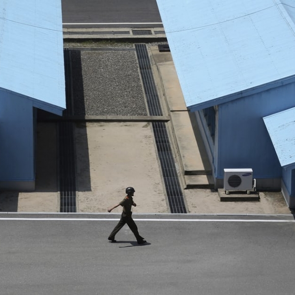 დიტა ალანგკარა - პანმუნჯომი, ჩრდილოეთ კორეა: ჩრდილო კორეელი ჯარსიკაცი დემილიტარიზებულ სასაზღვრო სოფელში გადაადგილდება.