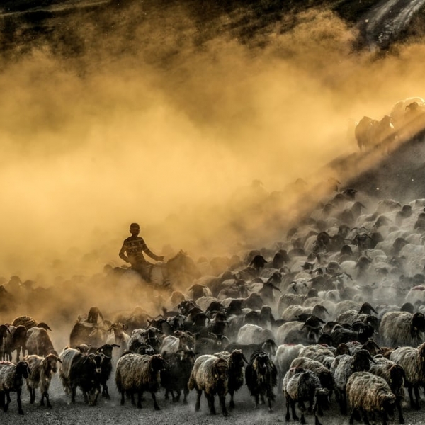 ალი ილსან ოზთურქი - ბითლისი, თურქეთი: მოსაწველად მორეკილი ცხვრები და მწყემსები.