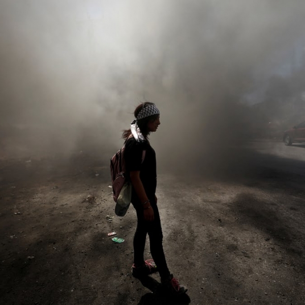 მოჰამად თოროქმანი - ბეით ელი, პალესტინა: კვამლში მდგომი პალესტინელი გოგონა საპროტესტო აქციისას.