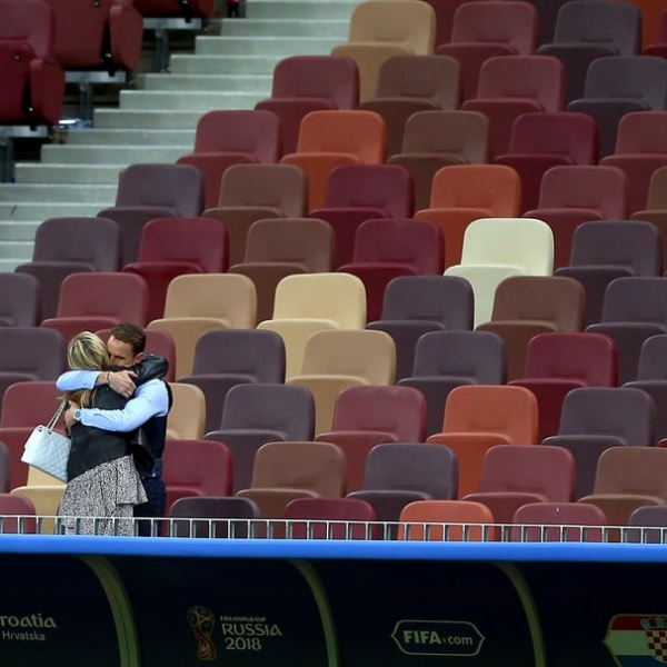 მაიკლ ზემანეკი - მოსკოვი, რუსეთი: ინგლისის ნაკრების მწვრთნელი გარეთ საუთგეიტი მუნდიალის ნახევარფინალში ხორვატიასთან მარცხის შემდეგ მეუღლეს ეხუტება.