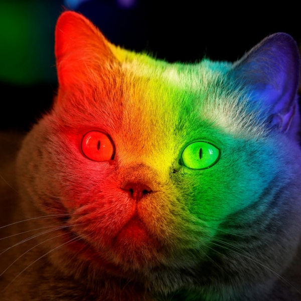 ილია ნაიმუშინი - კრასნოიარსკი, რუსეთი: ბრიტანული ჯიშის კატას სხვადასხვა ფერის სინათლე ანათებს.