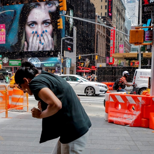 ბრენდან მაკდერმიდი - ნიუ იორკი, აშშ: ფუტკრები „ტაიმს სკვერზე“ მიმავალ ქალს ეხვევიან.