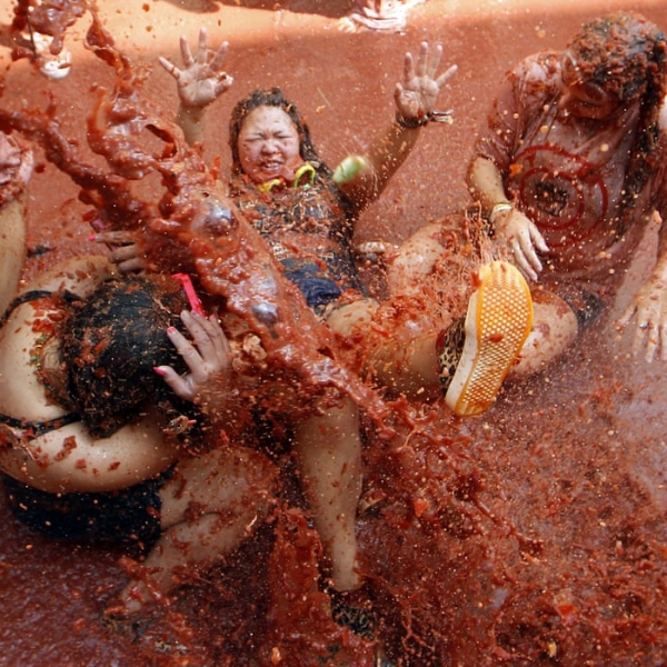 ალბერტო საისი - ბუნოლი, ესპანეთი: ტომატინას ტრადიციული ფესტივალის მონაწილეები.