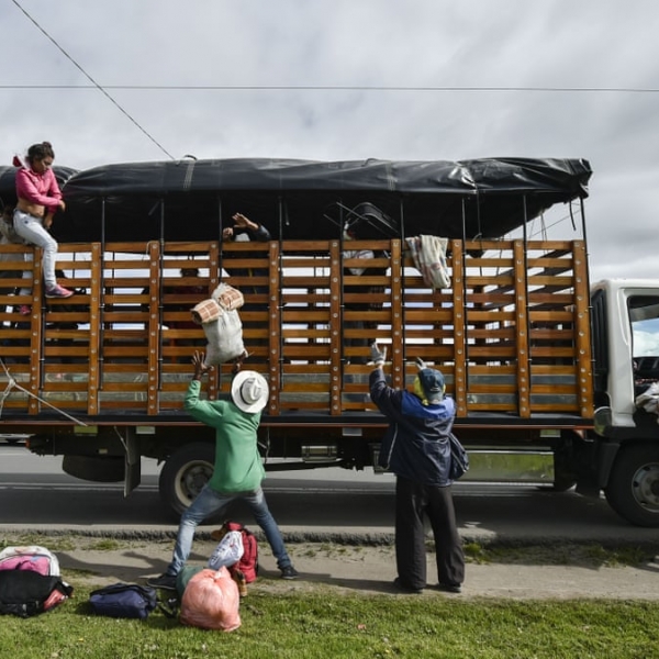 ლუის რობაიო - იპიალესი, კოლუმბია: ვენესუელელი მიგრანტები კუთვნილ დახმარებას იღებენ.