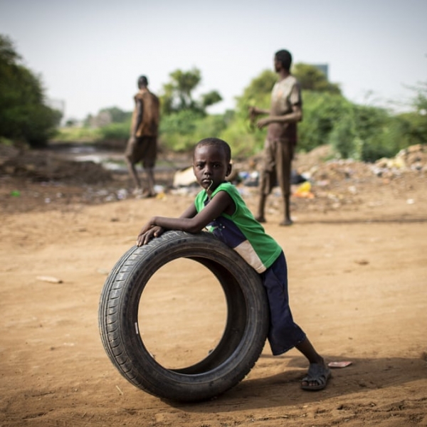იოზგე ელიფ ქიზილი - ხართუმი, სუდანი: საბურავით მოთამაშე ბიჭუნა.