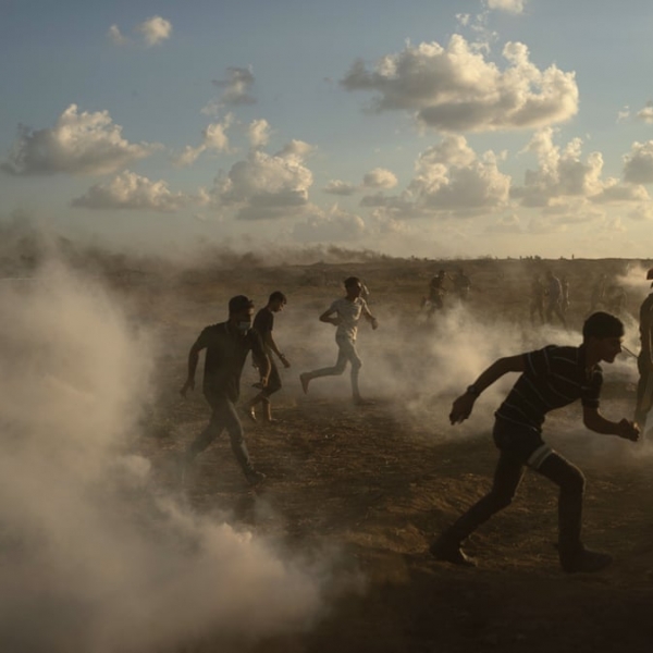ფელიპე დანა - ღაზა, პალესტინა: პალესტინელი საპროტესტო აქციის მონაწილეები ისრაელის სპეცრაზმელთა იერიშს გაურბიან.