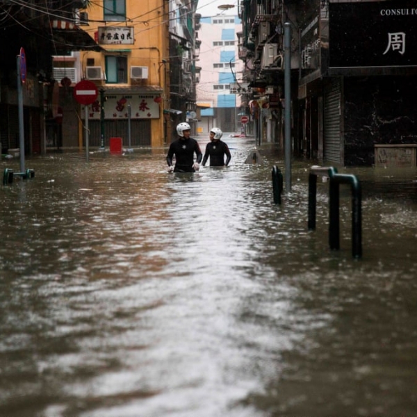 აიზეკ ლოურენსი - მაკაო: მაშველები ტაიფუნ „მანკჰუტის“ შედეგად დატბორილ გამზირზე.