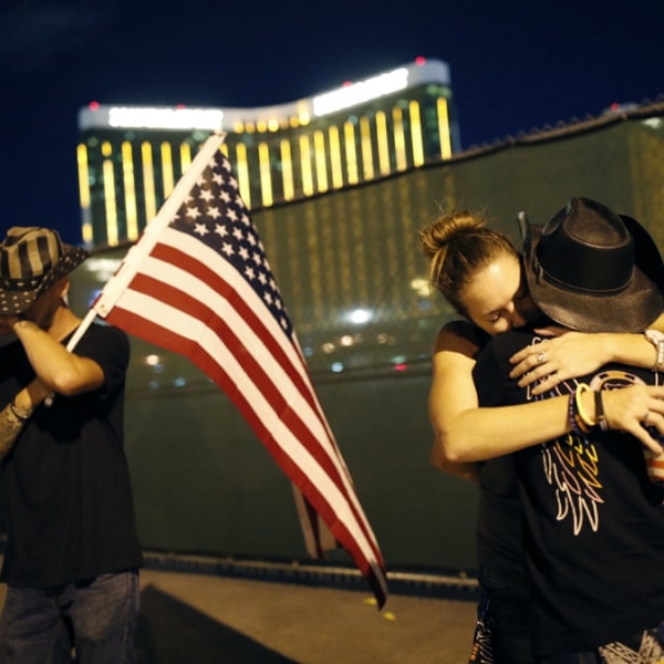 ჯონ ლოჩერი - ლას ვეგასი, ნევადა: ქანთრის მუსიკალურ ფესტივალზე გასულ წელს მომხდარი თავდასხმიდან ერთი წლის თავზე შეკრებილი ხალხი.